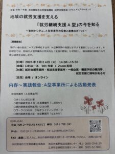 浜田圏域にある就労継続支援A型(5カ所)による実践報告研修会のご案内です。